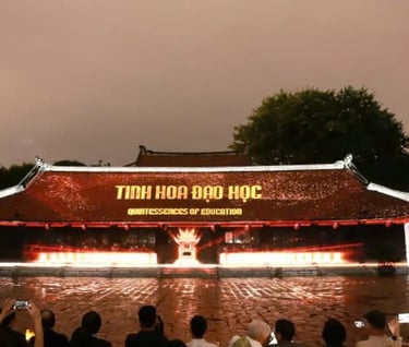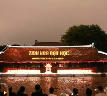 Immerse yourself in the impressive 3D Mapping light space, recreating the spirit of lifelong learning and respect for teachers in Vietnam. Participate in traditional activities: studying with a Confucian scholar, practicing calligraphy, sealing a print. Enjoy the "Quintessence of Education" Art Show honoring knowledge.